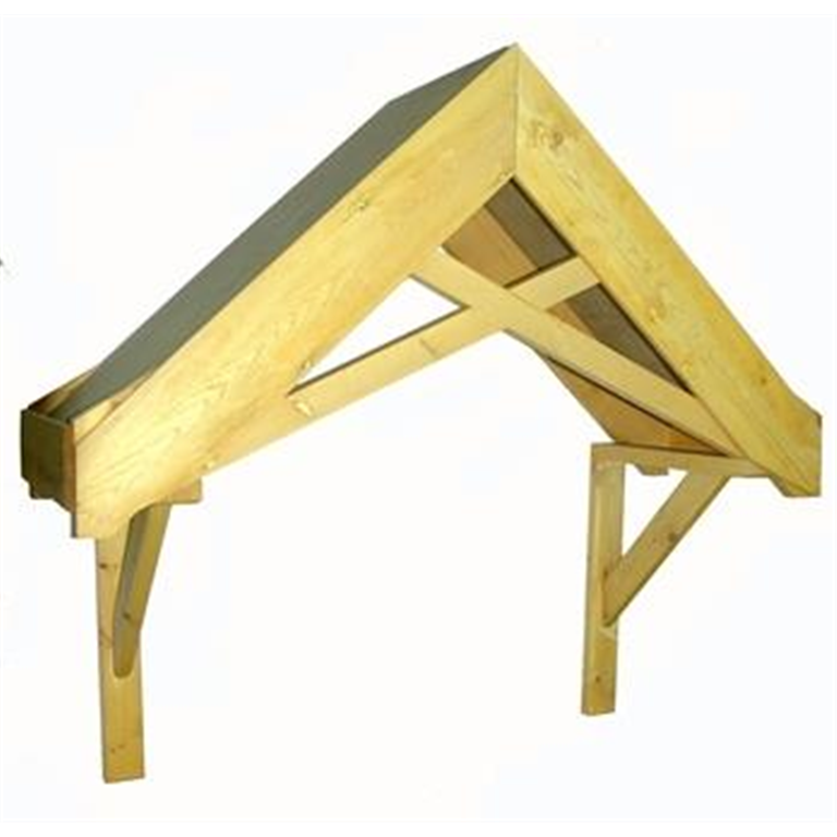 The Crossover Canopy is a high quality dual pitch softwood joinery product. (FSC - INT-COC-003944.274) designed to suit door openings of 1400mm. 600mm projection, 830mm high above door head, maximum brick opening 1400mm, 42° pitch, weight 40kg- F-PCS-CO